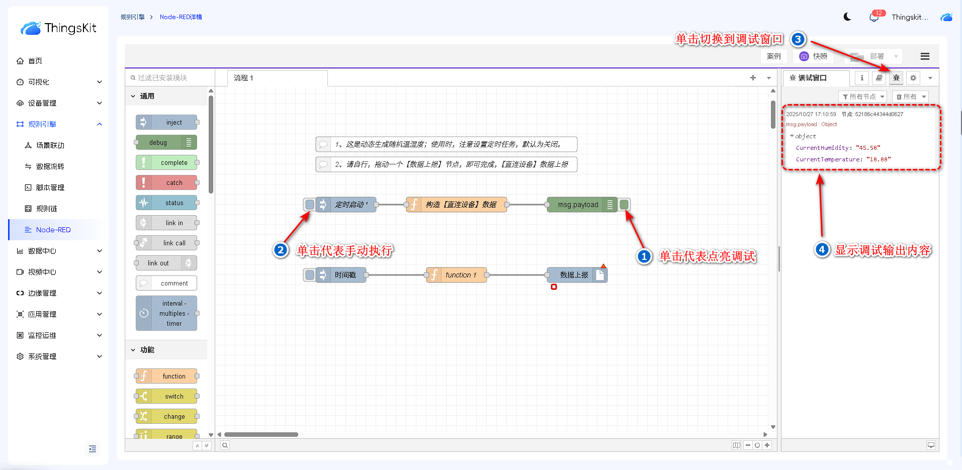 概述:【调试窗口】展示所有【调试节点】接收的信息,便于进行问题诊断和定位。