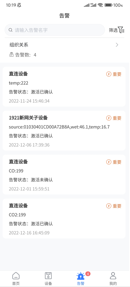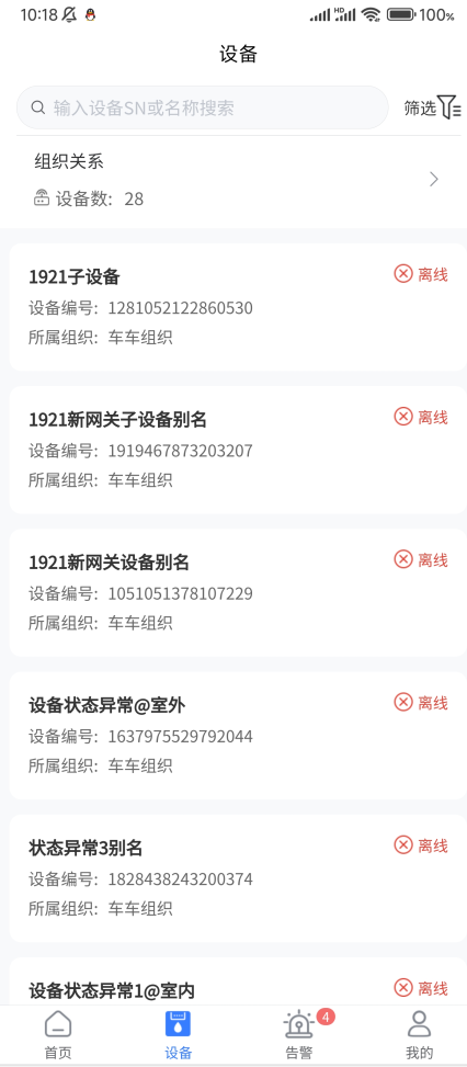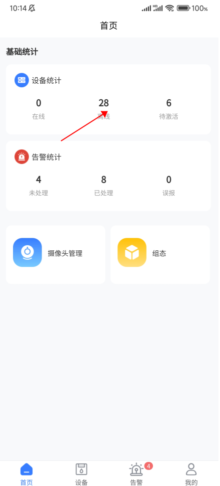 用户点击设备(在线,离线,待激活)会跳转到设备界面,显示首页相对应状态的数据;
