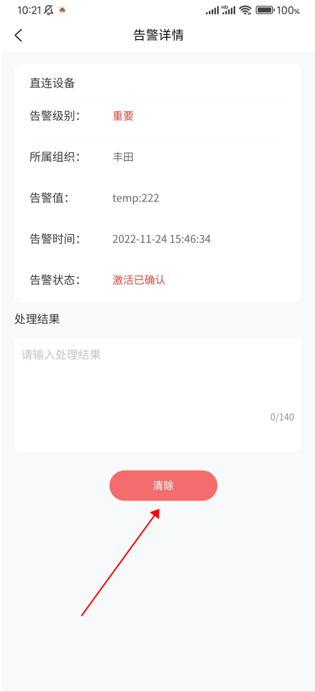 用户点击告警统计(未处理,已处理,误报)会跳转到告警界面,显示首页相对应状态的数据,可以对激活未确认和激活已确认的数据进行清除;